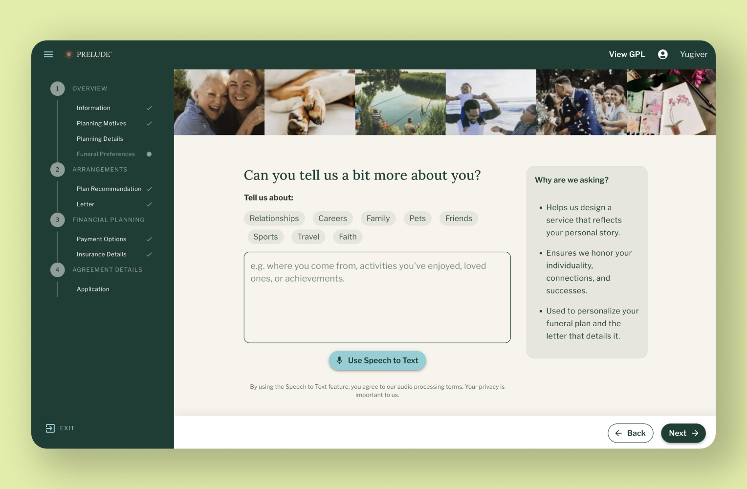 We built Prelude because preneed, one of the highest-leverage revenue channels for funeral homes, is broken. Policies are sold with incomplete documentation, inconsistent pricing, and limited inflation protection. The experience is transactional when it should be deeply personal. Prelude is an end-to-end sales and planning platform that lets agents complete a plan and close in a single meeting while automatically generating all required documentation. The anchor: AI generates a heartfelt letter to the customer's family about why they're pre-planning, reframing the entire conversation from insurance sale to personal legacy.