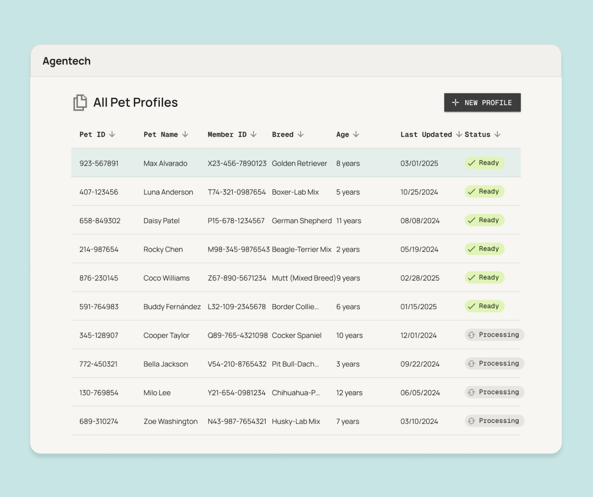 We discovered the problem by embedding with a nationwide pet insurance carrier and seeing the claims bottleneck firsthand. Early customers jumped at the chance to bring speed and scalability to their workflows. The co-founders who took the helm immediately went after the broader property and casualty market and landed a major customer within months. Agentech has closed two follow-on rounds of funding in the 18 months since spinning out of the studio.
